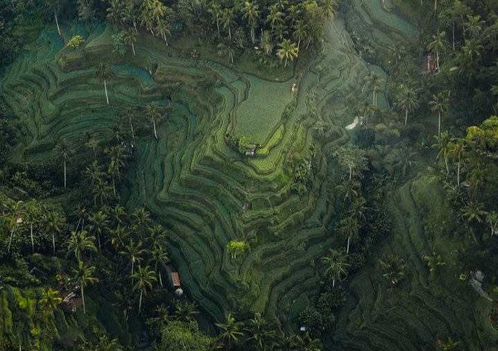 Keindahan Tegallalang Rice Terrace sangat sempurna untuk diabadikan pada pagi hari, ketika sinar matahari mulai menyinari sawah dan menciptakan bayangan yang dramatis di antara terasering.