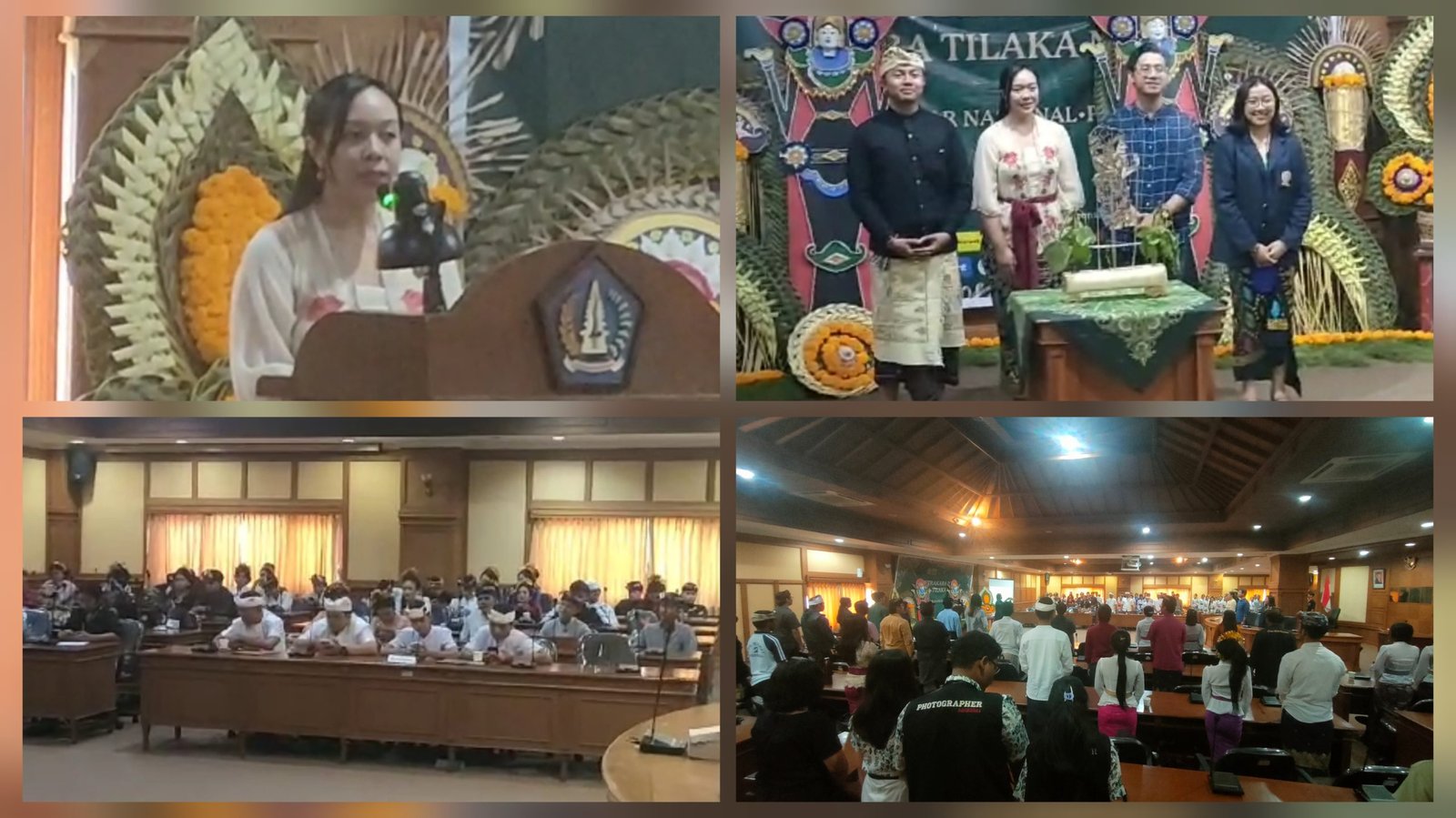 Kolase foto: Sekretaris Unit Pengembangan Ormawa (UPO) Universitas Udayana (Unud) Ni Nyoman Clara Listya Dewi, S.IP.,M.A., (kiri atas) mewakili Wakil Rektor Unud Bidang Kemahasiswaan membuka secara resmi Perlombaan Sastrakara 2023 di Ruang Madya Gosana, Gedung DPRD Kabupaten Badung, Sabtu (30/9/2023). (Sumber: Ngurah Dibia)