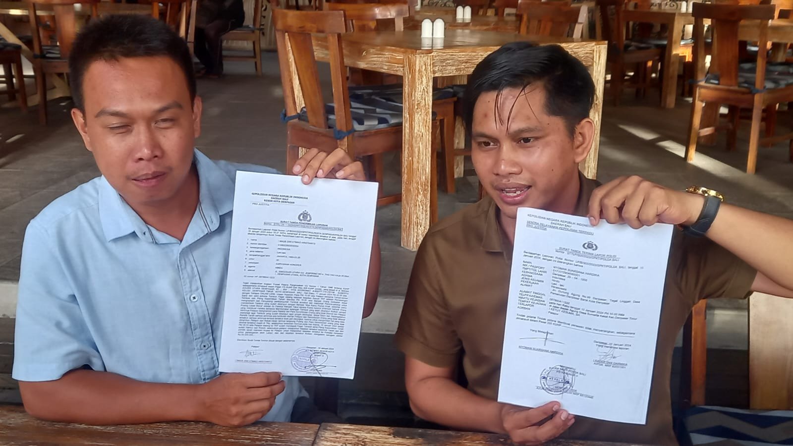 Foto: Made Dwiatmiko Aristianto (kanan) didampingi I Made Juanda Aditya (keponakan Nyoman Liang), saat konferensi pers di Kuta, Badung, Selasa (23/1/2024). (Sumber: BB/212)