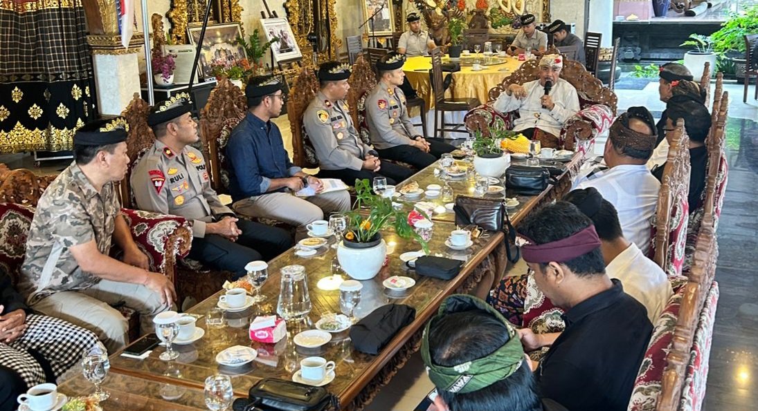 Barometer Bali | Klungkung – Penetapan tersangka terhadap I Wayan Wartawan, Pacalang Desa Adat Besakih, menjadi salah satu topik hangat dalam simakrama (silaturahmi, red) Kapolres Karangasem bersama jajaran dengan Bandesa Agung Majelis Desa Adat (MDA) Provinsi Bali, Minggu (18/5/2025), di Puri Den Bencingah, Akah, Klungkung.