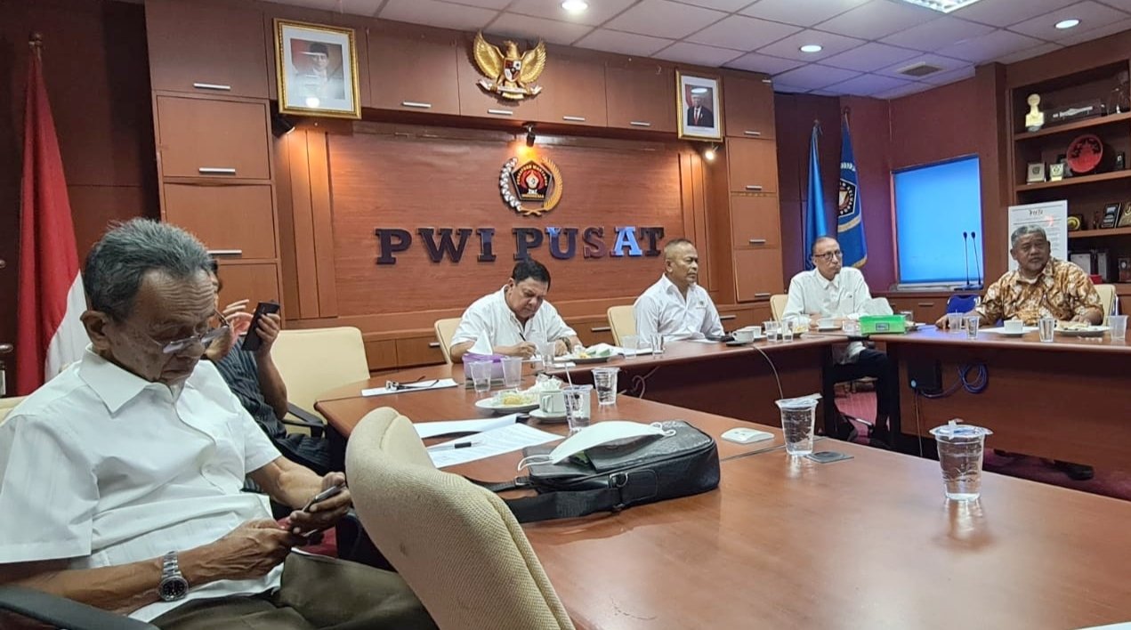 Dalam Rapat Pleno Pengurus Harian PWI Pusat dihadiri Sekjen Mirza Zulhadi Nachli; Anggota Dewan Penasehat, Tribuana Said, Ismet Rauf dan N.Syamsoeddin Ch.Haesy; Ketua Bidang Organisasi, Zulkifli Gani Octto; Ketua Bidang Pendidikan, Nurjaman Mochtar; Ketua Bidang Luar Begeri, Ahmed Kurnia; Ketua Bidang Kerjasama Antar Lembaga, Abdul Aziz; Bendahara Umum, Muhamad Ihsan; Wakil Bendahara Umum, Dar Edi Yoga; Ketua Bidang Advokasi dan Pembelaan Wartawan, Oktap Riyadi. (BB/501/hms/PWI)