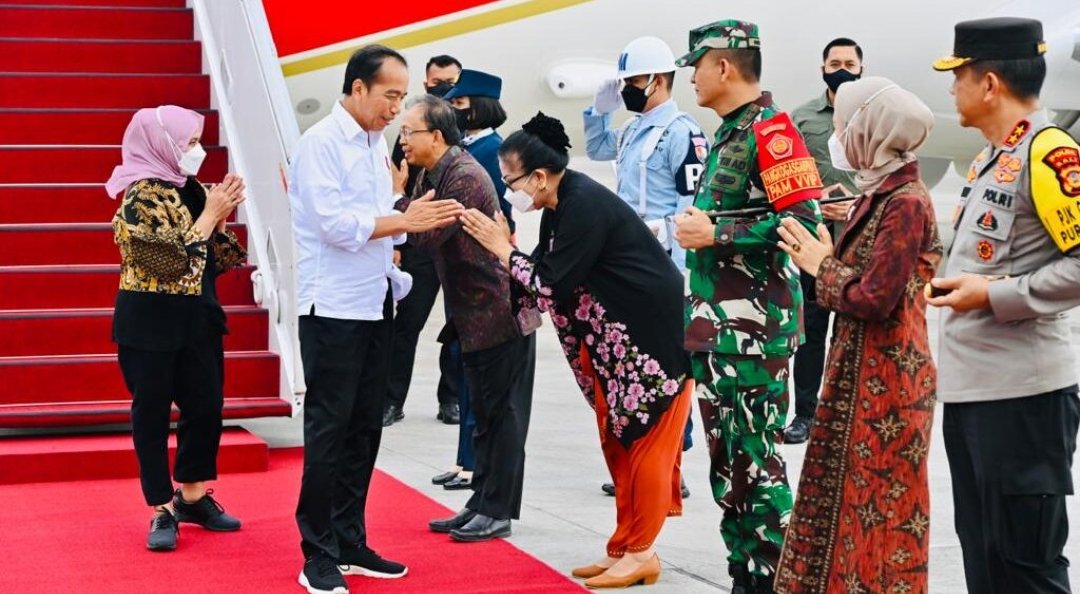 Presiden Joko Widodo (Jokowi) bersama Ibu Iriana Joko Widodo tiba di Bandara Internasional I Gusti Ngurah Rai, Kabupaten Badung, Provinsi Bali, dengan menggunakan Pesawat Kepresidenan Indonesia-1, Rabu, 1 Februari 2023, pukul 16.50 Wita. (Foto: BPMI Setpres/Laily Rachev)