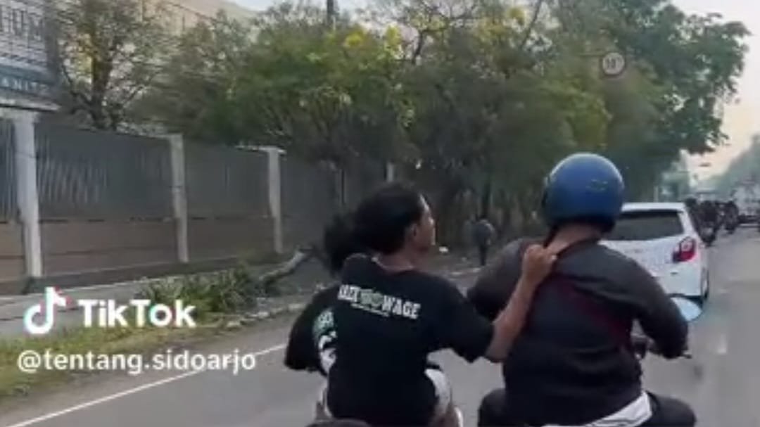 Barometer Bali | Sidoarjo – Beredar video viral yang memperlihatkan dua pemuda berboncengan memukul pengendara lain di jalan pada Sabtu (23/8), sekitar pukul 06:45 WIB di jalan Banjarkemantren – Gedangan.