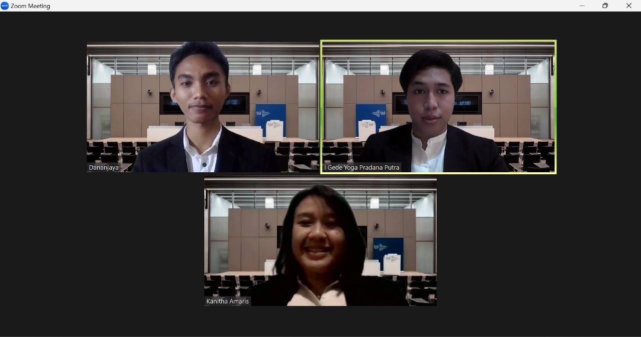 Tiga mahasiswa perwakilan SCIL FH Unud raih Juara 2 dalam ajang AMITY 2022 sebagai tim mengikuti Kompetisi Peradilan Semu Internasional (Tingkat Internasional) secara daring 4-5 November 2022. Foto: scil/fh/unud