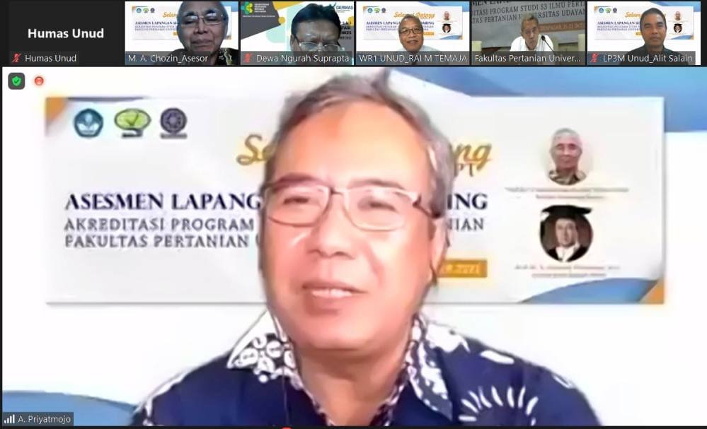 Pada kesempatan ini Asesor Prof.Dr. Ir. Muhammad A. Chosin, M.Agr, menyampaikan pihaknya ditugaskan oleh BAN-PT ke Unud dan bersyukur dapat bertemu kembali walaupun dilakukan secara daring dan kehadiran pimpinan universitas menunjuk komitmen dari Rektor untuk keunggulan Program Studi yaitu S3 Pertanian.