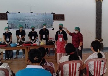 Ket foto: Diseminasi pengolahan kulit buah pir menjadi kripik serangkaian program pengabdian kepada masyarakat di Desa Abiansemal Dauh Yeh Cani, Badung pada kamis (5/9/2024). (Sumber: barometerbali)