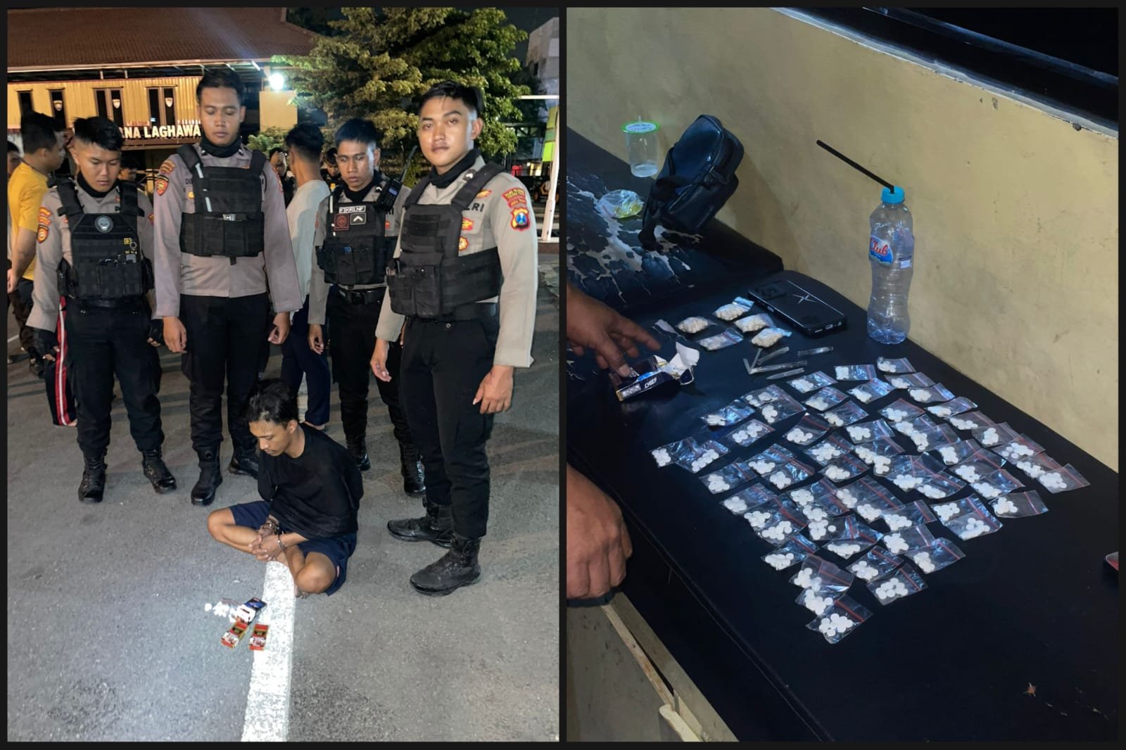 Tim Raimas menemukan keduanya berboncengan motor di Jalan Tenggumung Wetan, Surabaya, saat itu. Mereka menunjukkan gelagat mencurigakan, setelah di lakukan interogasi ternyata menyimpan pil LL dan alat isap sabu-sabu (SS). “Kami temukan 215 butir pil LL dan 653 pil Y,” kata Kasat Samapta Polres Pelabuhan Tanjung Perak AKP Roni Faslah melalui Kasi Humas Iptu Suroto, Rabu (11/9/2024).