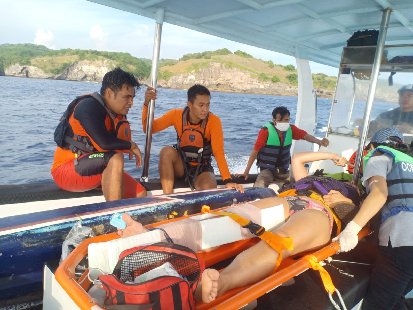 Nusa Penida | barometerbali – Seorang WNA asal Italia atas nama Alessandra R (41) mengalami cedera saat berenang di Kelingking Beach, Sabtu (4/6/2022). Sekitar pukul 14.00 Wita ia berenang dan tergulung ombak hingga dicurigai cedera parah kaki.