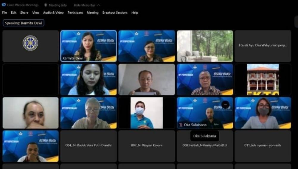 Foto: Perpustakaan Unud gelar acara bedah buku “Cerita Rakyat Bali Aga dan Ainu Jepang”, yang berlangsung secara online melalui Webex Meeting, Jumat (4/11/2022).