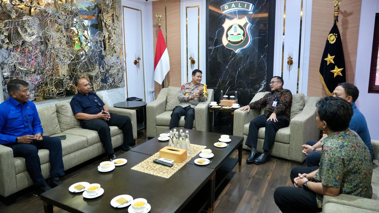 Denpasar | barometerbali – Kapolda Bali, Irjen Pol. Daniel Adityajaya, S.H., S.I.K., M.Si. didampingi Dir Resnarkoba, Kombes Pol. Iwan Eka Putra, S.I.K. dan Kabid Labfor Kombes Pol. I Nyoman Sukena, S.I.K. menerima kunjungan Kepala BNN Provinsi Bali, Brigjen Pol. Rudy Ahmad Sudrajat, S.I.K., M.H., Kamis (20/2/2025).