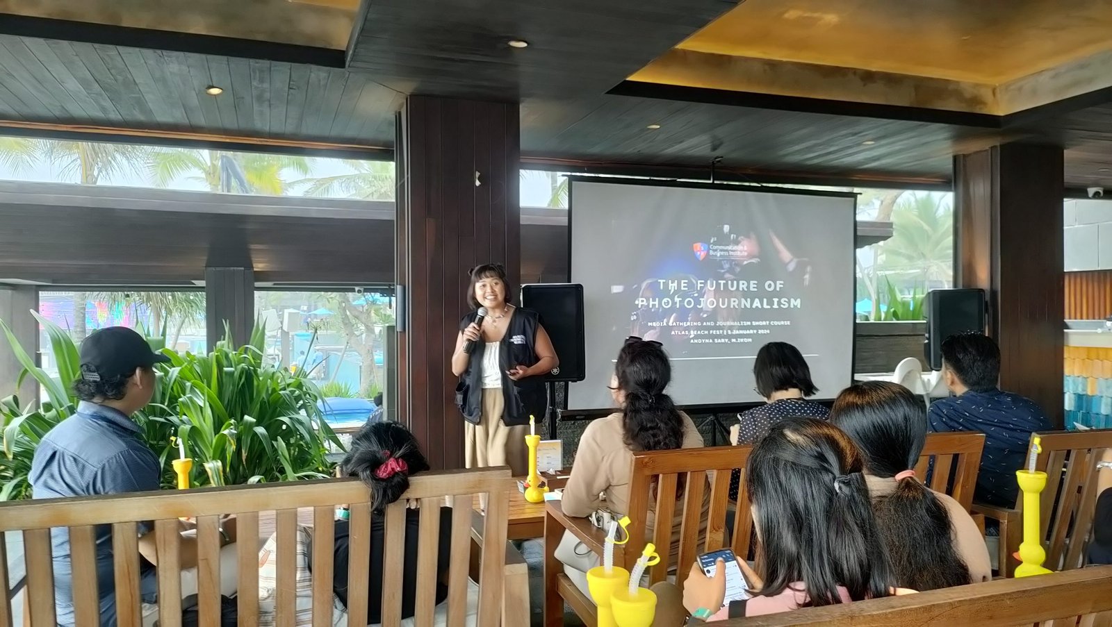 Foto: Media gathering LSPR Bali diisi dengan kursus singkat,” Photo Journalism” bersama narasumber Andyna Sari, M.Ikom, di Atlas Beach Fest, Banjar Berawa, Desa Tibubeneng, Kuta Utara, Badung, Jumat (5/1/2023). (Sumber: Ngurah Dibia)