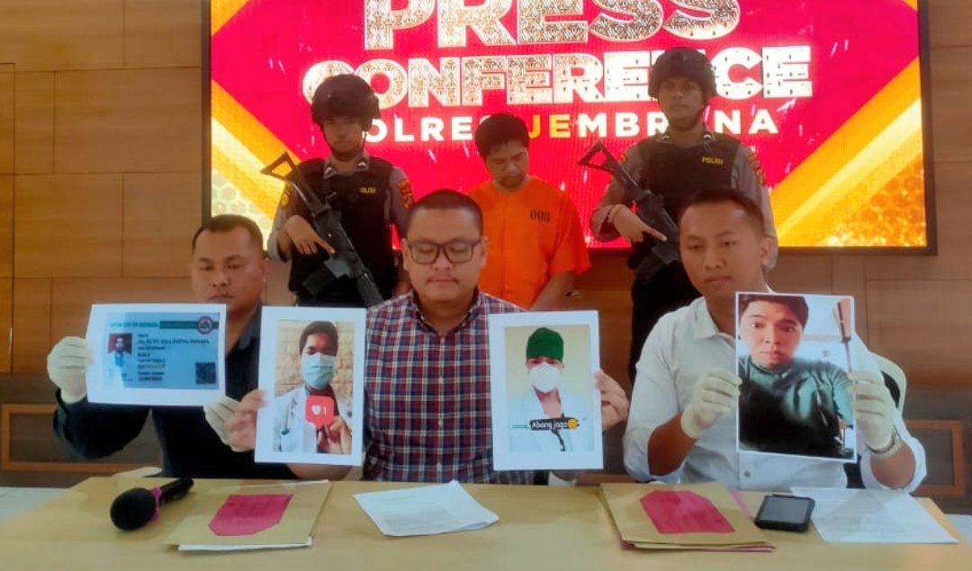 Jembrana | barometerbali – Sosok I Putu Eka Satya Tanaya berhasil menipu sejumlah orang dengan klaim sebagai seorang Dokter Spesialis Anastesi bertugas di Rumah Sakit Siloam Denpasar. Namun, setelah penyelidikan intensif, terungkap identitas dokter tersebut palsu. Hal ini terungkap saat digelar konferensi pers di aula Mapolres Jembrana, Kamis (9/11/23).