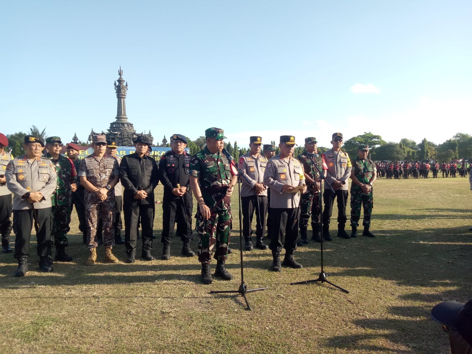 Denpasar| barometerbali – TNI dan Polri melaksanakan apel pasukan pengamanan dalam rangka kegiatan Konfrensi Tingkat Tinggi (KTT) World Water Forum(WWF) apel yang dipimpin oleh Pangkogabwilhan II, Marsekal Madya TNI M. Khairil Lubis dan Kabaharkam Polri Komjen Pol. Dr. Drs. H. Mohammad Fadil Imran, M.Si., apel Gelar Pasukan dihadiri oleh ribuan personel TNI-Polri tersebut bertujuan untuk mengecek kesiapan personel dan materil yang akan melaksanakan tugas pengamanan para Kepala Negara dan delegasi peserta KTT WWF ke-10 mendatang.