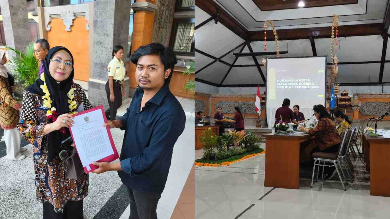 Barometer Bali | Denpasar – Badan Eksekutif Mahasiswa Fakultas Hukum Universitas Udayana (BEM FH Unud) secara resmi menyerahkan surat terbuka kepada Komisi X Dewan Perwakilan Rakyat Republik Indonesia (DPR RI) saat Kunjungan Kerja Reses Komisi X DPR RI di Aula LLDIKTI Wilayah VIII sebagai bentuk penolakan terhadap kerja sama antara Universitas Udayana dan Tentara Nasional Indonesia Angkatan Darat (TNI AD).
