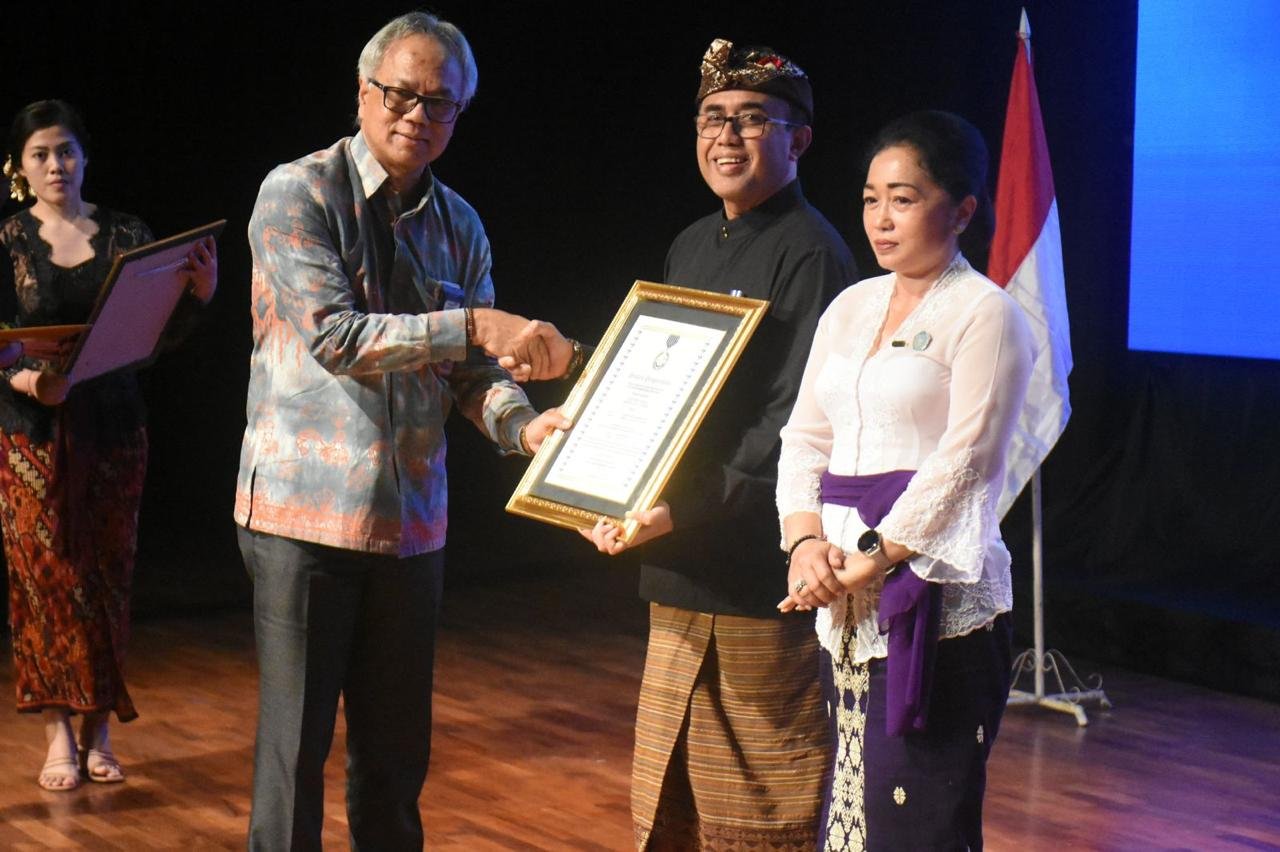 Ket foto: Walikota Jaya Negara dan Ketua TP PKK Ny. Sagung Antari Jaya Negara terima Penghargaan Manggala Karya Kencana. (Sumber: barometerbali/Win)