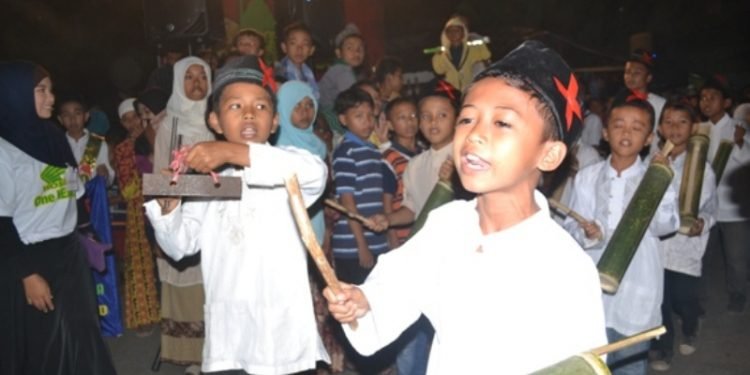 Ngotek, tradisi Ramadan yang dilakukan anak-anak di daerah Loloan, Jembrana, Bali, untuk membangunkan orang-orang saat sahur. (barometerbali/dok.net)