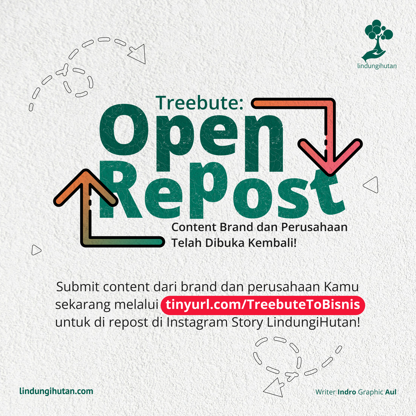 Untuk informasi lebih lanjut mengenai Treebute, silakan kunjungi akun Instagram LindungiHutan dan daftarkan bisnis Anda melalui tinyurl.com/TreebuteToBisnis.