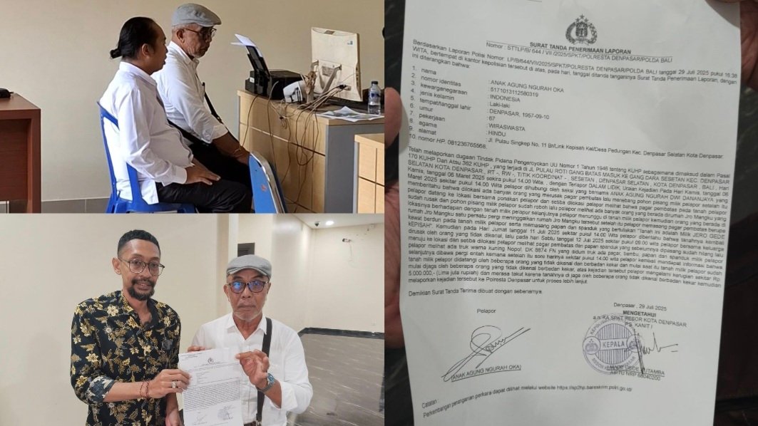 Laporan polisi dilayangkan oleh Anak Agung Ngurah Oka (Turah Oka), mewakili ahli waris keluarga Jero Kepisah, setelah pagar kawat, banner, dan penutup tanah yang telah lama mereka kuasai secara turun-temurun dirusak, Jumat (11/7/2025) lalu.