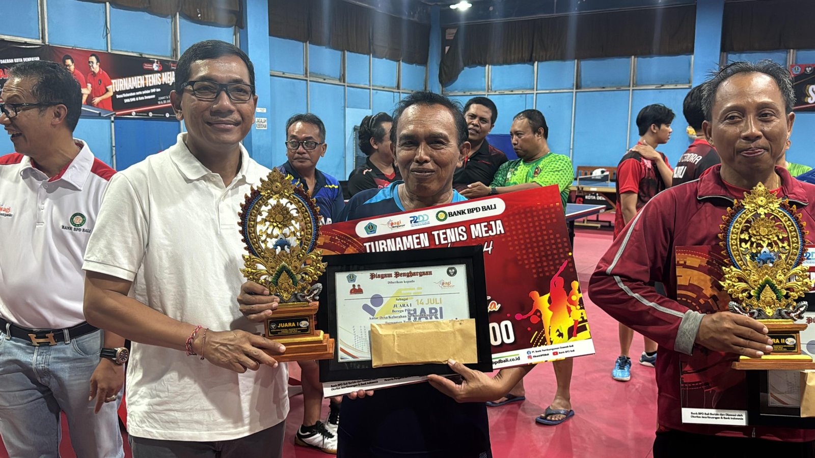 Ket foto: Serangkaian memperingati Hari Pajak tahun 2024 yang diselenggarakan Bapenda Kota Denpasar, Desa Ubung Kaja berhasil meraih juara I Turnamen Tenis Meja beregu putra di GOR Yowana Suci Denpasar, Sabtu (20/7/2024). (Sumber: barometerbali/dar)