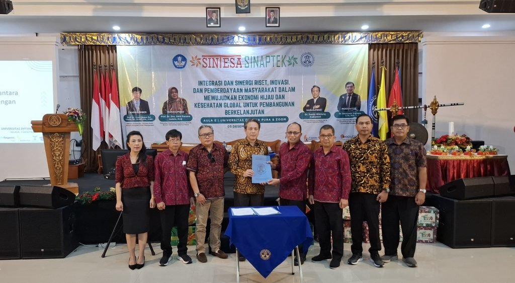 Badung | barometerbali – Menjawab berbagai tantangan dan peluang yang dihadapi dalam mengintegrasikan penelitian dan pengabdian masyarakat, sehingga menghasilkan inovasi dengan fokus pada pencapaian perubahan yang berdampak positif, Lembaga Penelitian dan Pengabdian Masyarakat (LPPM) Universitas Dhyana Pura menyelenggarakan Seminar Ilmiah Nasional Teknologi Sains dan Sosial Humaniora (SINTESA) dan Seminar Ilmiah Nasional Aplikasi IPTEK (SINAPTEK) dengan tema, “Integrasi dan Sinergi Riset, Inovasi, dan Pemberdayaan Masyarakat dalam Mewujudkan Ekonomi Hijau dan Kesehatan Global untuk Pembelajaran Berkelanjutan” di Aula E, Universitas Dhyana Pura (Undhira) Jl. Raya Padang Luwih, Dalung, Kuta Utara, Badung, Selasa, (3/12/2024).