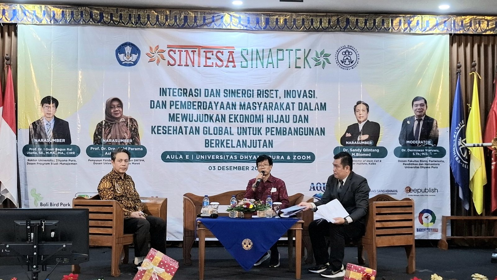 Foto: Undhira menyelenggarakan Seminar Ilmiah SINTESA dan SINAPTEK bertema, “Integrasi dan Sinergi Riset, Inovasi, dan Pemberdayaan Masyarakat dalam Mewujudkan Ekonomi Hijau dan Kesehatan Global untuk Pembelajaran Berkelanjutan” di Aula E, Universitas Dhyana Pura (Undhira) Jl. Raya Padang Luwih, Dalung, Kuta Utara, Badung, Selasa, (3/12/2024). (barometerbali/213)