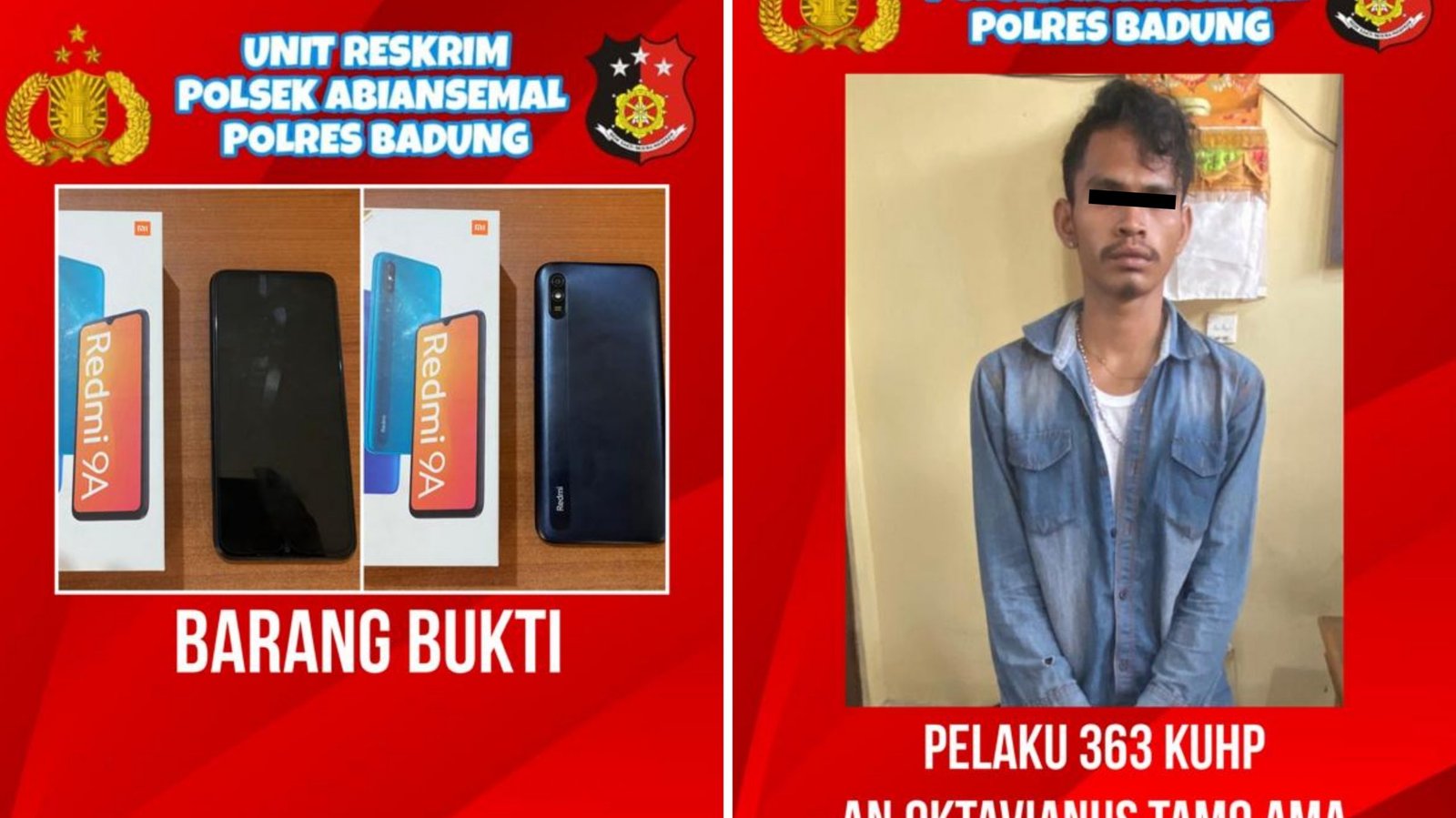 “Setelah dilakukan interogasi pelaku mengakui perbuatannya telah mengambil Handphone merk Redmi 9 A. selanjutnya pelaku bersama barang bukti (BB) dibawa ke Polsek Abiansemal guna proses lebih lanjut,” terang Kapolsek Abiansemal.