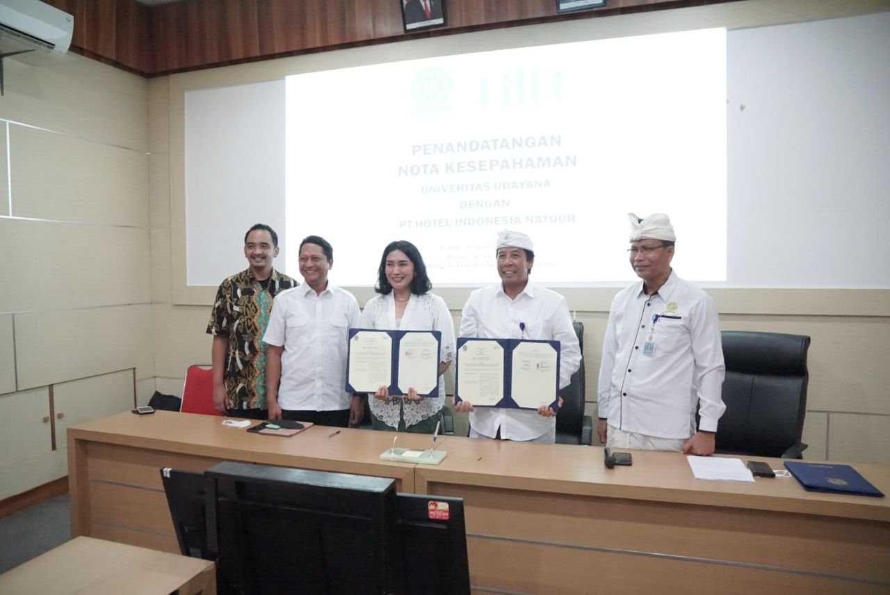 Rektor Unud Prof. I Nyoman Gde Antara menyampaikan terima kasih kepada Hotel Indonesia Natour di mana Dirut bersama delegasi telah hadir di Unud dalam rangka memformalkan kerja sama melalui penandatanganan MoU.