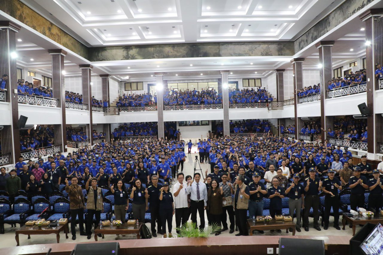 Badung | barometerbali – Pelepasan dan penerjunan mahasiswa dan DPL KKN PPM Periode XXVII, KKN Tematik Literasi dan Inklusi Keuangan OJK, dan KKN Tematik Infrastruktur PUPR Universitas Udayana (Unud) 2023 yang mengambil tema “Kerja Nyata Mengabdi Untuk Negeri, Bangkitkan Ekonomi dan Kesehatan Berkualitas” bertempat di Gedung Auditorium Widya Sabha Unud Kampus Jimbaran, Jumat (14/7/2023).