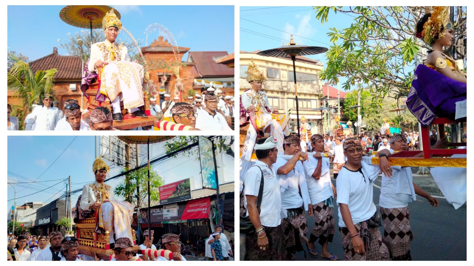 Sebanyak 9 anak menginjak remaja ditandu keliling serangkaian Upacara Munggah Deha Teruna, 9 keturunan Puri Satria Dalem Kaleran ditandu keliling Kuta, Selasa (26/6/2023) (BB/Dewa)