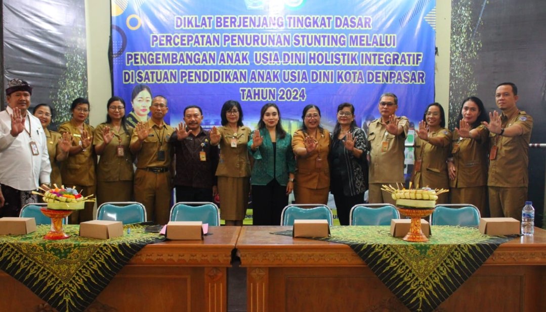 Denpasar | barometerbali – Upaya pencegahan stunting melalui berbagai program secara serius dilakukan Pemerintah Kota Denpasar. Salah satunya lewat pemberian Pendidikan dan Latihan (Diklat) Dasar Berjenjang bagi puluhan Guru TK dan PAUD, yang diadakan di Aula SKB SPNF, Tembau, Senin (24/6). Diklat ini nantinya diharapkan akan mampu menguatkan pemahaman para pendidik untuk mengetahui perkembangan tumbuh kembang anak didik agar terhindar dari kondisi stunting.