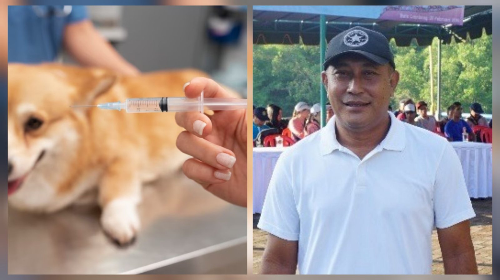 Kolase foto: Ilustrasi vaksinasi rabies (kiri) dan Kadis Pertanian Denpasar A.A Gde Bayu Brahmasta (kanan) di Denpasar, Rabu (6/9/2023). (Sumber: Hms Pemkot Dps/Freepik/Pur)