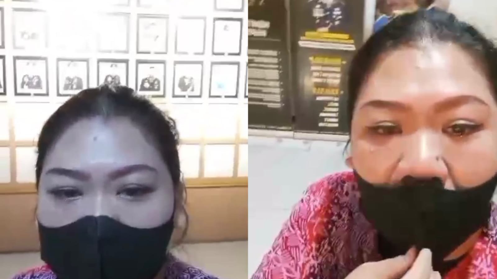 Dalam video yang beredar, wanita tersebut tampak nangis di dalam kantor polisi. Dia curhat laporannya dihentikan oleh polisi.Dia berjanji, tidak ada berhenti untuk mencari keadilan.