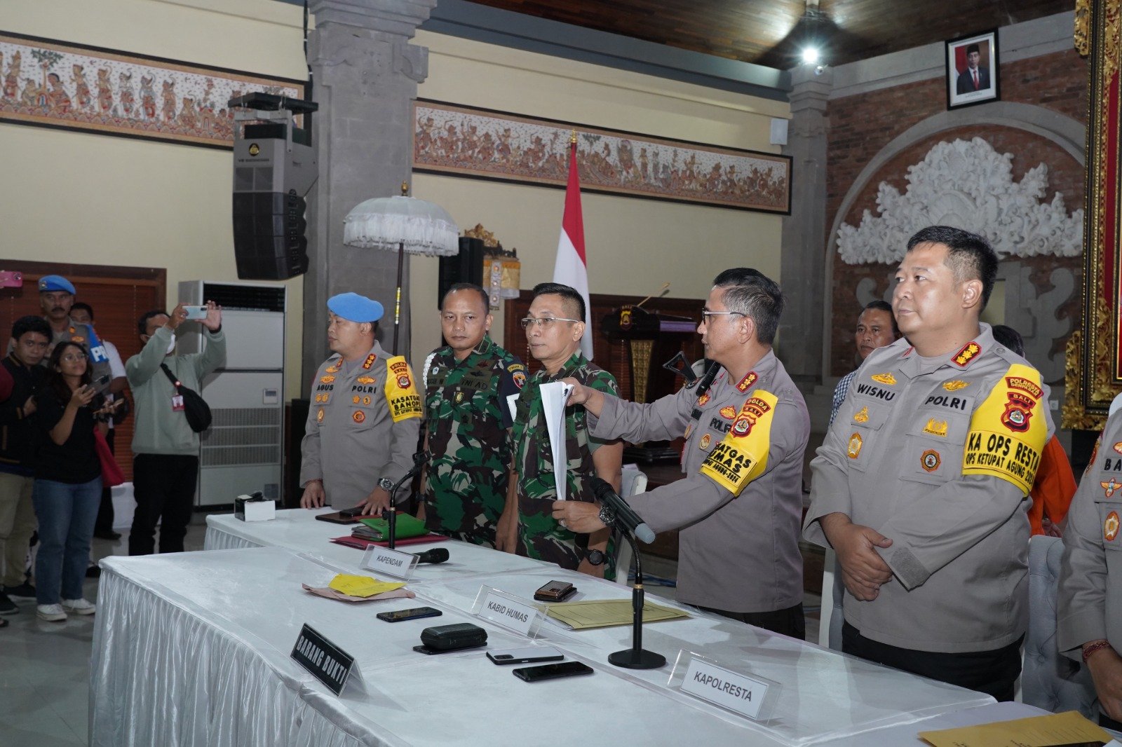 Foto: Konferensi tanggapan Polda Bali dan Kodam IX/Udayana terkait video viral kasus istri seorang TNI jadi korban perselingkuhan malah jadi tersangka yang akhir-akhir ini beredar viral di media sosial, di Mapolda Bali Senin (15/4/2024). (BB 215).