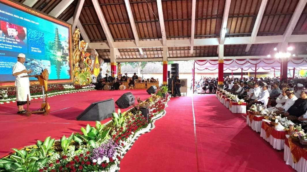 Barometer Bali | Gianyar – Gubernur Bali, Wayan Koster, menekankan pentingnya peran desa dan desa adat dalam menjaga kesucian dan kelestarian alam Bali melalui pengelolaan sampah berbasis sumber. Dalam Konsolidasi Gerakan Bali Bersih Sampah yang digelar di Wantilan Pura Samuan Tiga, Gianyar, Jumat (11/7/2025), ia mendorong penerapan pararem atau aturan adat yang mengikat sebagai solusi nyata menanggulangi sampah, terutama plastik sekali pakai.