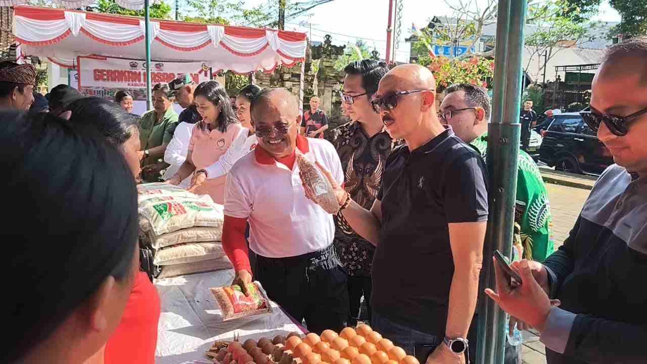 Barometer Bali | Bangli – Wakil Bupati Bangli, I Wayan Diar didampingi Ketua GOW Kab.Bangli Ny. Suciati Diar, hadir dan meninjau langsung pelaksanaan Gerakan Pasar Tani yang diselenggarakan oleh Dinas Pertanian, Ketahanan Pangan, dan Perikanan (PKP) Kabupaten Bangli pada Jumat (24/10/2025) bertempat di halaman Kantor PLUT Kabupaten Bangli.