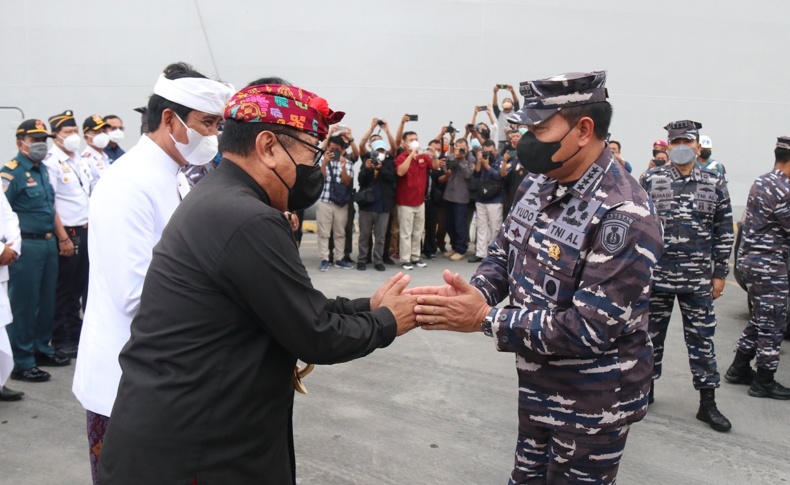 Foto: Cok Ace juga menyaksikan Panglingsir Puri Ageng Blahbatuh menyematkan Penganugerahan Penghargaan Ksatria Padma Nusantara kepada KSAL Laksamana Yudo Margono, di Pelabuhan Benoa, Kamis (12/5/2022)
