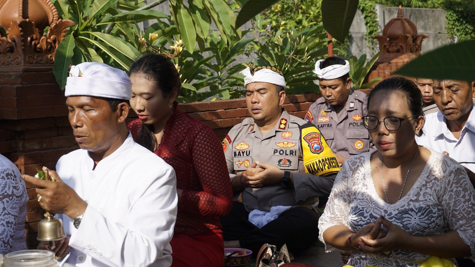 Ket foto: Wakapolresta Sidoarjo ajak umat Hindu doakan Pilkada saat Ibadah Hari Suci Tilem di Pura Kertha Bumi Bhayangkara Sidoarjo, Rabu (2/10/2024). (Sumber: barometerbali/Redho)