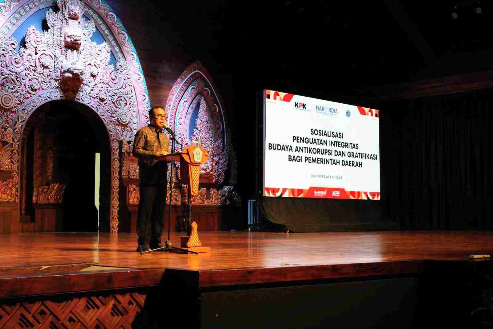 Barometer Bali | Denpasar – Tim Deputi Bidang Pendidikan dan Peran Serta Masyarakat Komisi Pemberantasan Korupsi (KPK) RI bekerja sama dengan Pemerintah Kota Denpasar menyelenggarakan kegiatan Sosialisasi Penguatan Integritas, Budaya Antikorupsi, dan Gratifikasi bagi Pemerintah Daerah. Kegiatan yang dilaksanakan dalam rangka memperingati Hari Antikorupsi Sedunia Tahun 2025 ini dibuka Walikota Denpasar, I Gusti Ngurah Jaya Negara di Gedung Taksu Dharma Negara Alaya, Denpasar, Selasa (4/11).