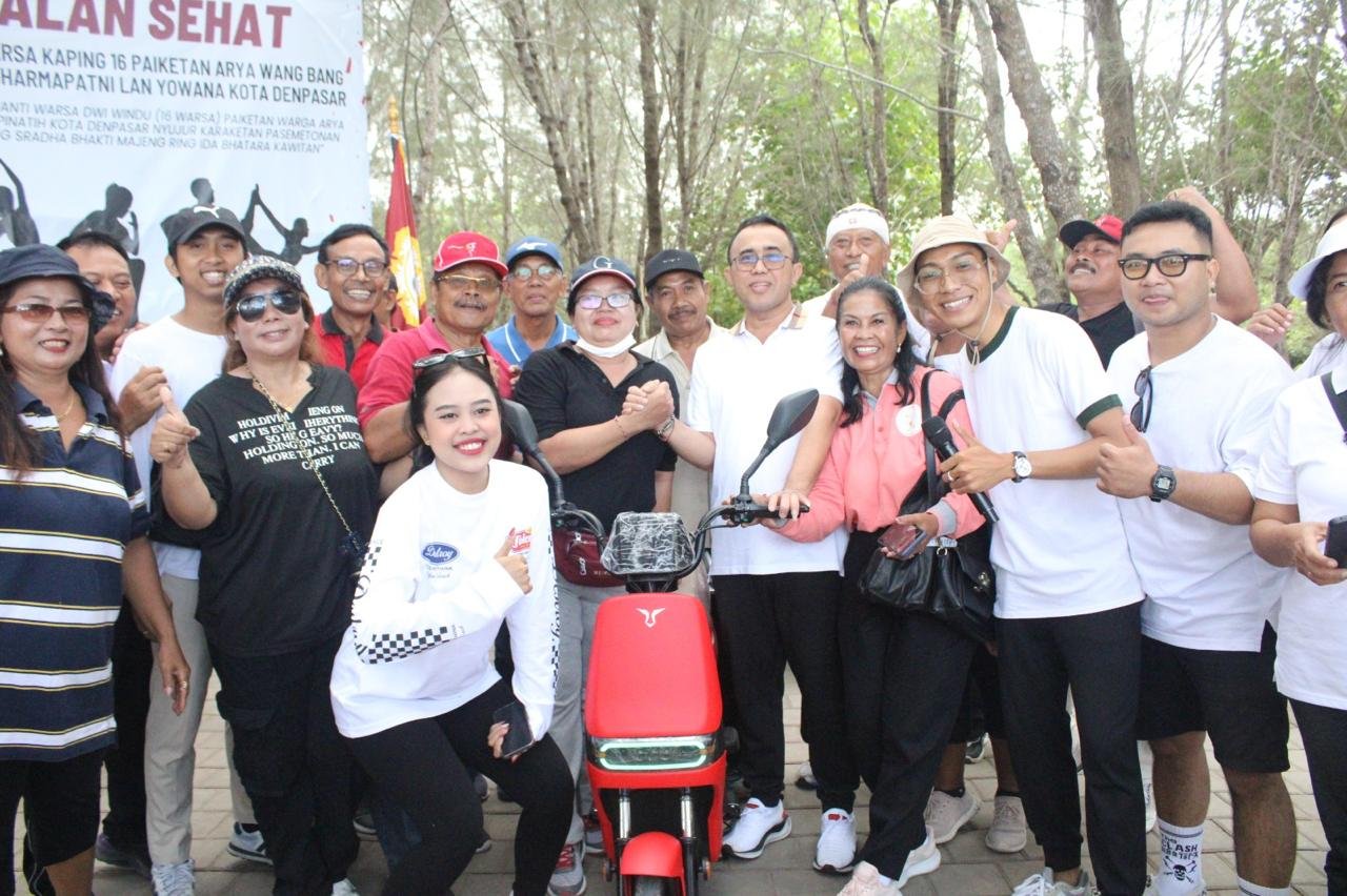 Ket foto : Walikota Denpasar, I Gusti Ngurah Jaya Negara yang juga selaku Ketua Umum Paiketan Warga Arya Wang Bang Pinatih (PW-AWBP) Bali/Pusat saat menghadiri Jalan Sehat yang digelar serangkaian HUT ke-16 Paiketan, Dharmapatni dan Yowana Arya Wang Bang Pinatih (AWBP) Kota Denpasar di Taman Inspirasi Muntig Siokan, Minggu (7/7). (Sumber: barometerbali/Ags)