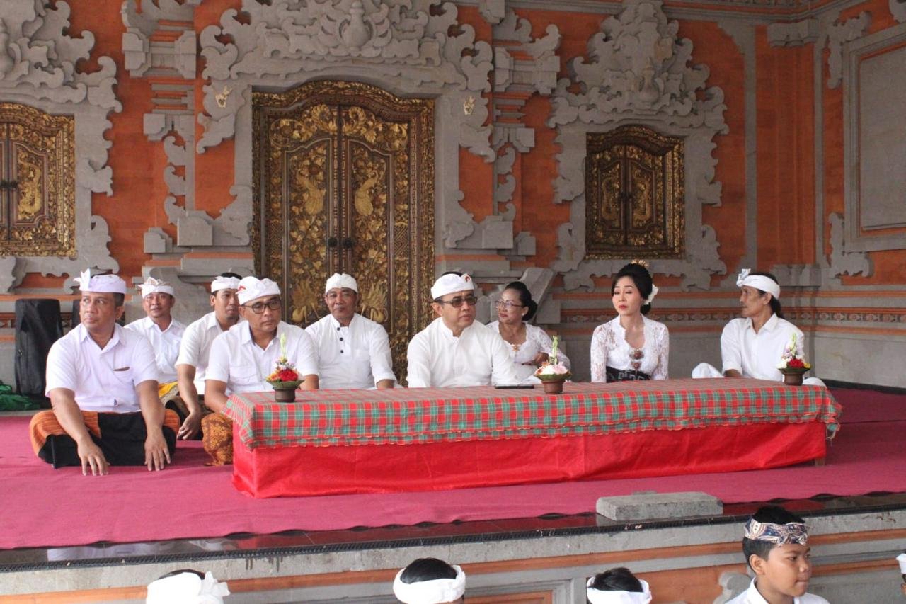 Denpasar | barometerbali – Walikota Denpasar, I Gusti Ngurah Jaya Negara menghadiri Upacara Pecaruan, Melaspas Bale Gede, dan Pujawali Ratu Gede Penyarikan yang dilaksanakan di Banjar Gelogor, Desa Adat Denpasar, Kelurahan Pemecutan, bertepatan dengan Rahina Tumpek Wariga. Upacara tersebut dilaksanakan setelah rampungnya pengerjaan Bale Gede, di Balai Banjar Gelogor, Sabtu (3/2/2024).