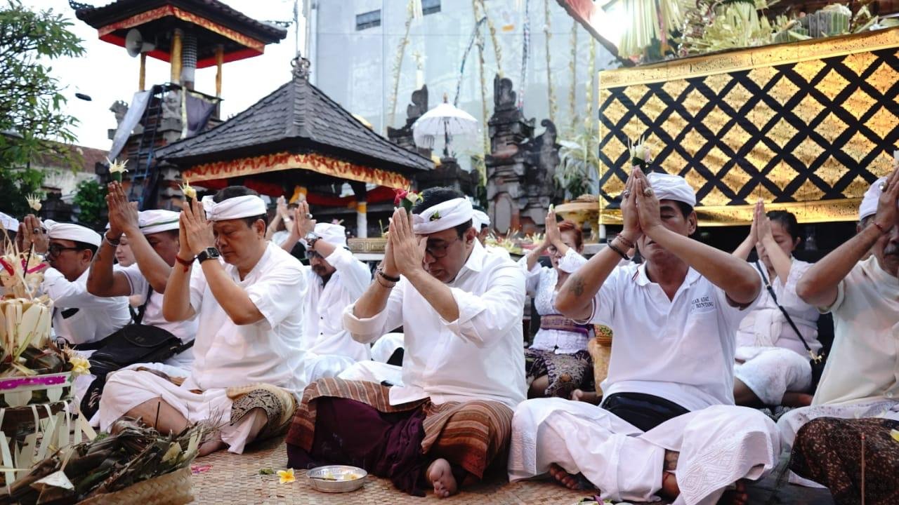 Ket foto; Walikota Denpasar, I Gusti Ngurah Jaya Negara menghadiri Pujawali Agung di Pura Batu Bintang, Desa Dauh Puri Klod, Kecamatan Denpasar Barat, bertepatan dengan Anggara Kliwon Wuku Prangbakat, pada Selasa (28/5). (Sumber: BB/Wah).