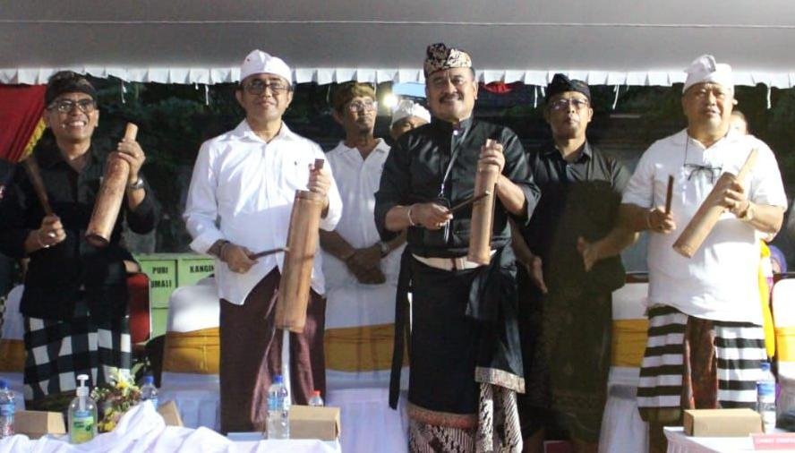 Foto: Walikota Denpasar, IGN Jaya Negara saat membuka parade ogoh-ogoh Desa Dangin Puri Kangin yang ditandai dengan membunyikan kulkul di Lapangan GOR Ngurah Rai Parkir Barat, pada Minggu (10/3/2024). (Sumber: BB/arm/hmsdps)