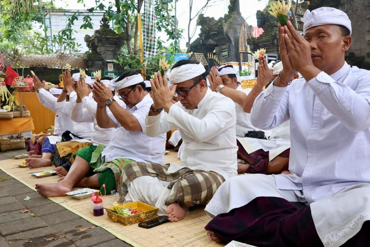Walikota Jaya Negara Ngaturang Bhakti Serangkaian Pujawali di Pura Swagina Taman Sari