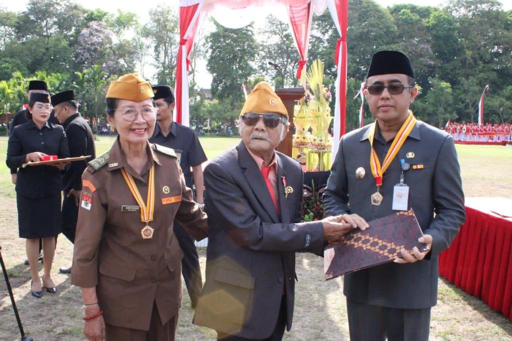 Foto : Walikota IGN Jaya Negara saat menerima penghargaan dari Dewan Pimpinan Pusat Legiun Veteran Republik Indonesia yang diserahkan Ketua LVRI Provinsi Bali, I Gst Bagus Saputera di Lapangan I Gusti Ngurah Made Agung Denpasar, Jumat (17/11/2023). (BB/HMS)