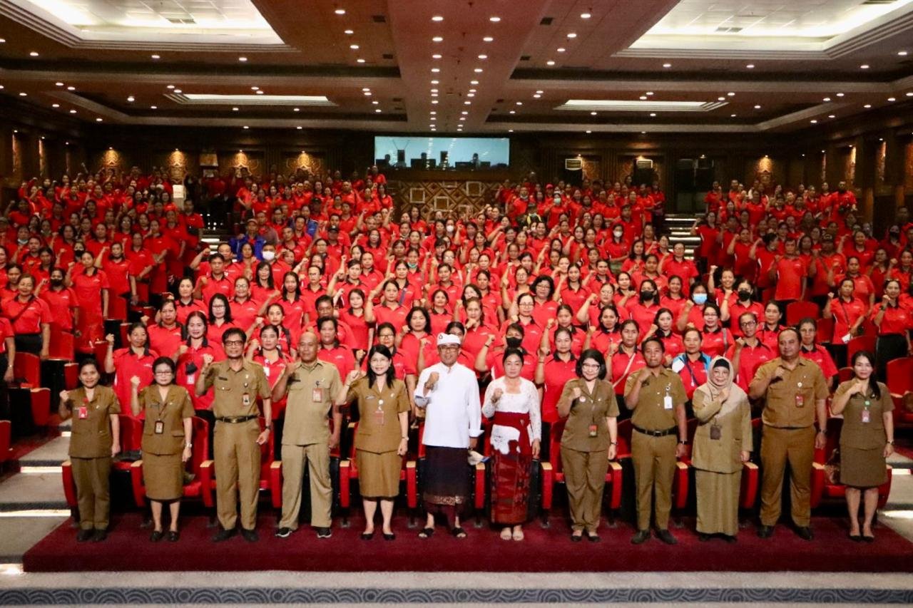 Ket foto: Penyerahan bantuan pakaian seragam kepada  412 Orang Juru Pemantau Jentik (Jumantik) di Kota Denpasar secara simbolis, Senin (23/9) bertempat di Ruang Taksu Gedung Dharma Nagara Alaya Denpasar. (Sumber: barometerbali/ays)