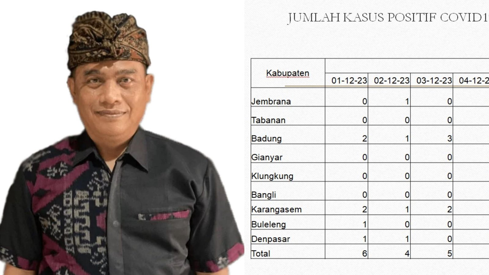 Kolase foto: Kepala Dinas Kesehatan Provinsi Bali Dr. dr. I Nyoman Gede Anom, M. Kes (kiri) dan cuplikan data kasus Covid-19 di Bali (Sumber: Hms Pemprov Bali)