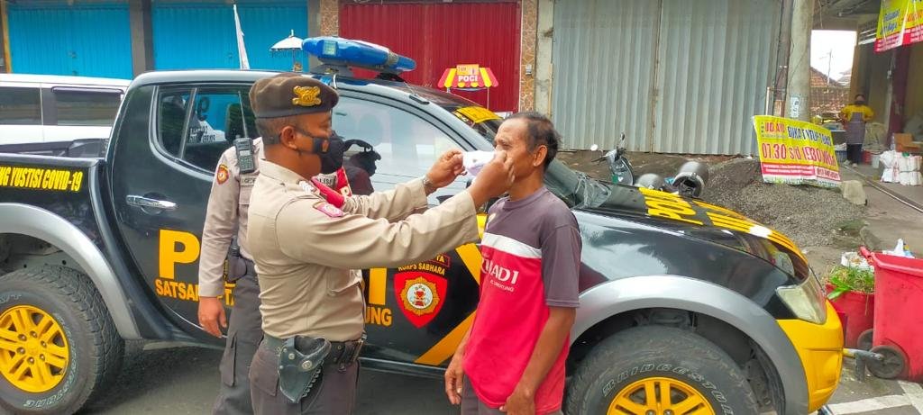 Waspada Varian Omicron, Sat Samapta Polres Klungkung Bagikan Masker