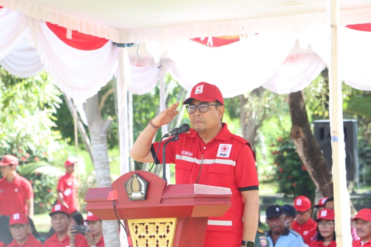 Foto: Wakil Walikota Denpasar, I Kadek Agus Arya Wibawa yang juga selaku Ketua Pengurus PMI Denpasar saat memimpin apel peringatan Hari Relawan PMI, Sabtu (9/12/2023). (BB/212)