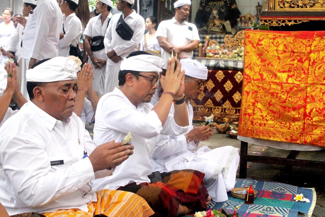 Ket foto: Wawali Arya Wibawa saat menghadiri prosesi Ngadegan Pemangku, Pewintenan dan Mepasupati Jero Mangku Gede di Pura Dalem Penataran Sari, Banjar Geladag, Desa Adat Pedungan, pada Rabu (3/7) pagi. (Sumber: barometerbali/esa)