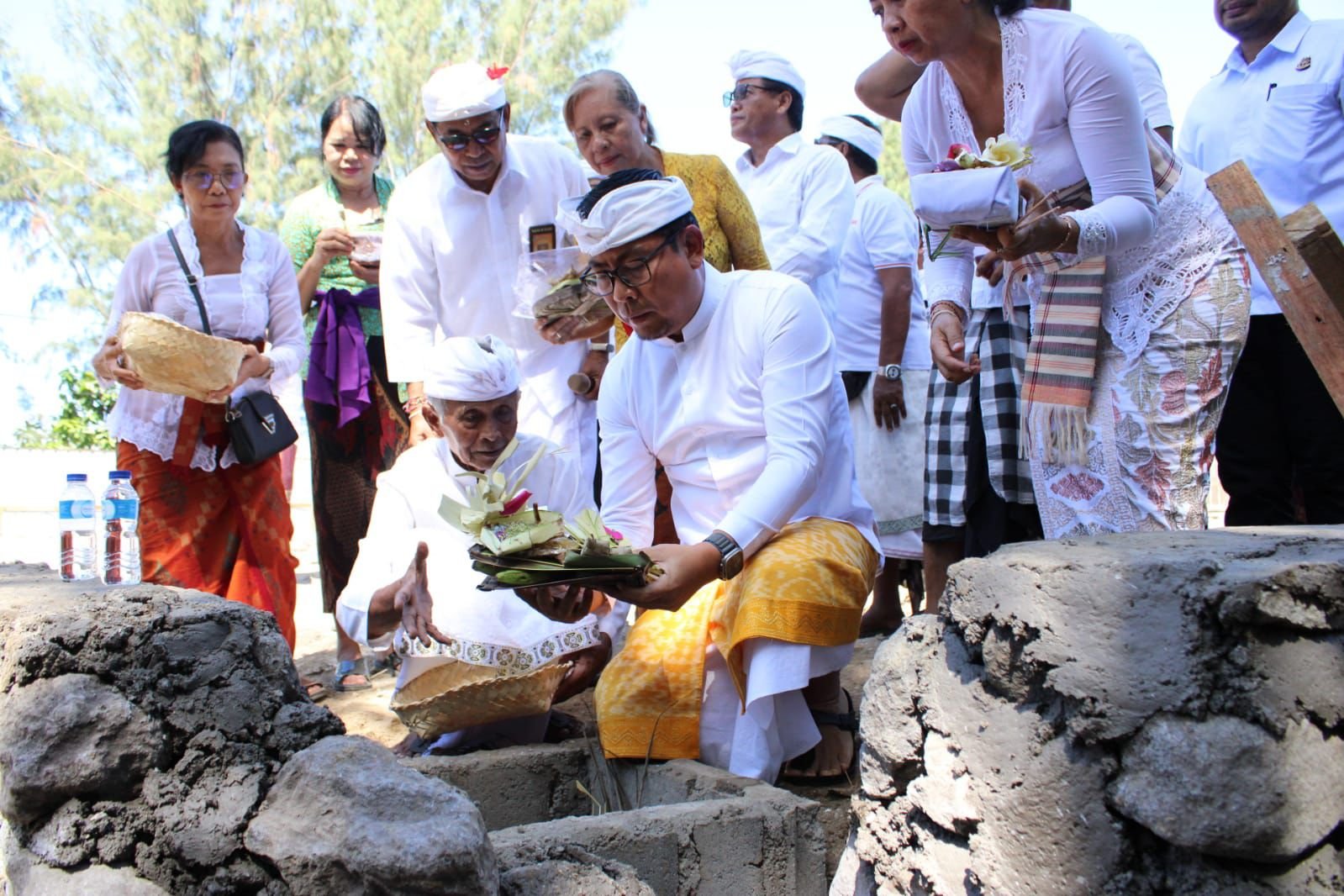 Foto: Wakil Walikota Denpasar, I Kadek Agus Arya Wibawa menghadiri serangkaian Upacara Mendem Dasar atau peletakan batu pertama, yang menandai dimulainya pembangunan Kantor Desa Sanur Kaja, Rabu (8/5/2024). (Sumber: BB/Eka).
